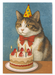 A cheerful cat, crowned with a colourful party hat, sits proudly before a delicious birthday cake. Whiskers twitch with excitement, eyes sparkle with joy – ready to celebrate, make a wish, and share the sweetest of moments.